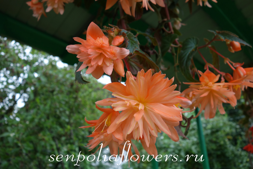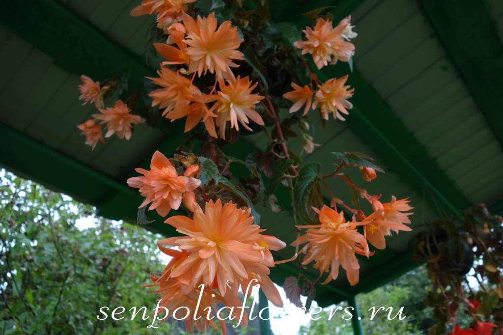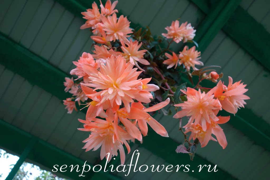 Корневая ампельная бегония из серии Belleconia. Крупные светло-оранжевые махровые цветы на поникающих побегах длиной около 30-40 см. Листья полу-сердцевидные вытянутые сочного зелёного цвета. Может использоваться для ландшафтного озеленения. Рекомендуется притенять от палящего полуденного солнца. Прекрасно себя чувствует и цветёт в полутени, например под кроной деревьев. Устойчива к болезням и вредителям.