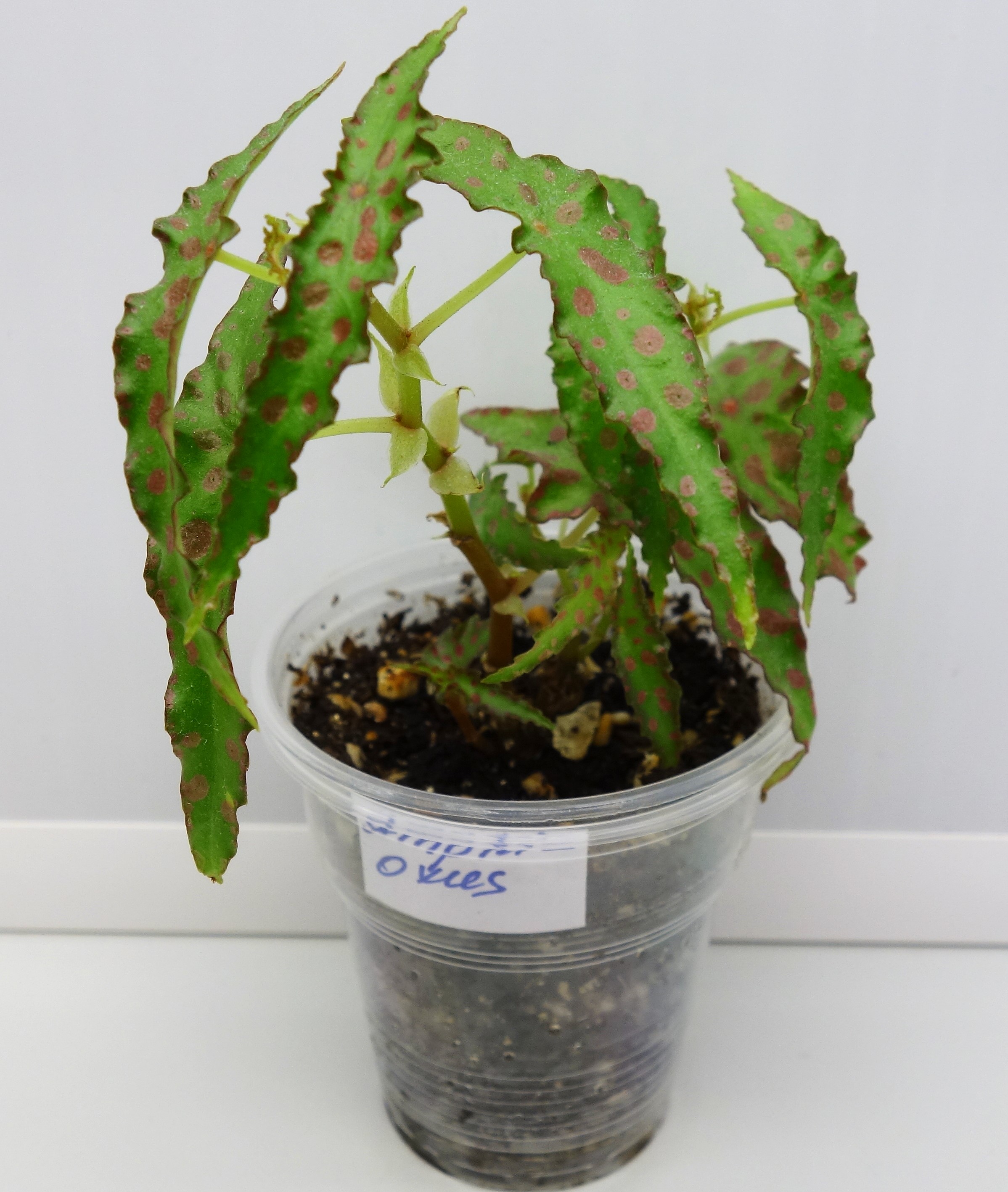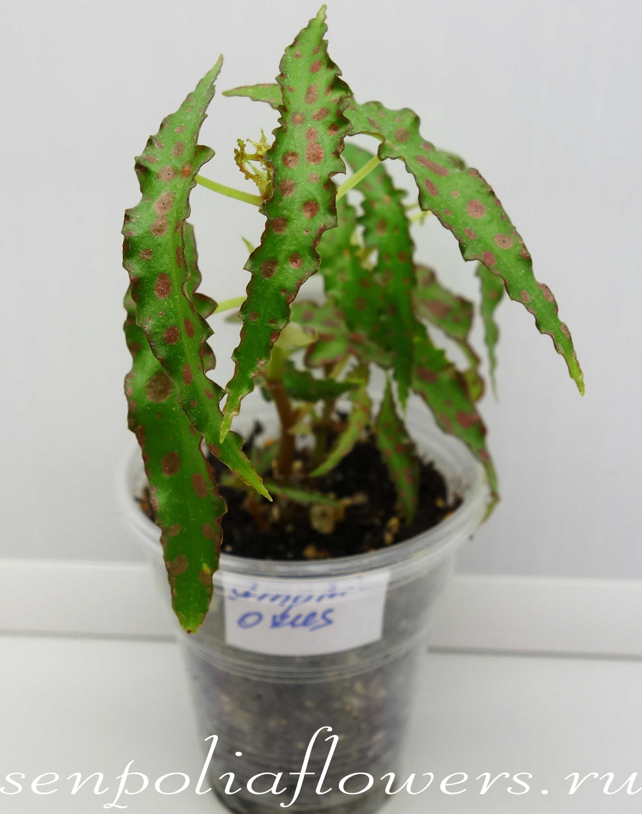 Эта природная кейн бегония имеет очень узкие заострённые листья, черешок вставляется не по краю, а в середине листа, отсюда и название “amphioxus“ ( от греч. amphi-“с обеих сторон” oxys “заостренный”). Очень заметные красные или розовые точки на листьях разного размера. Бесподобна.