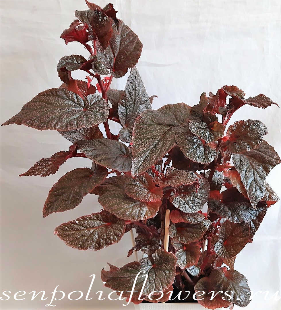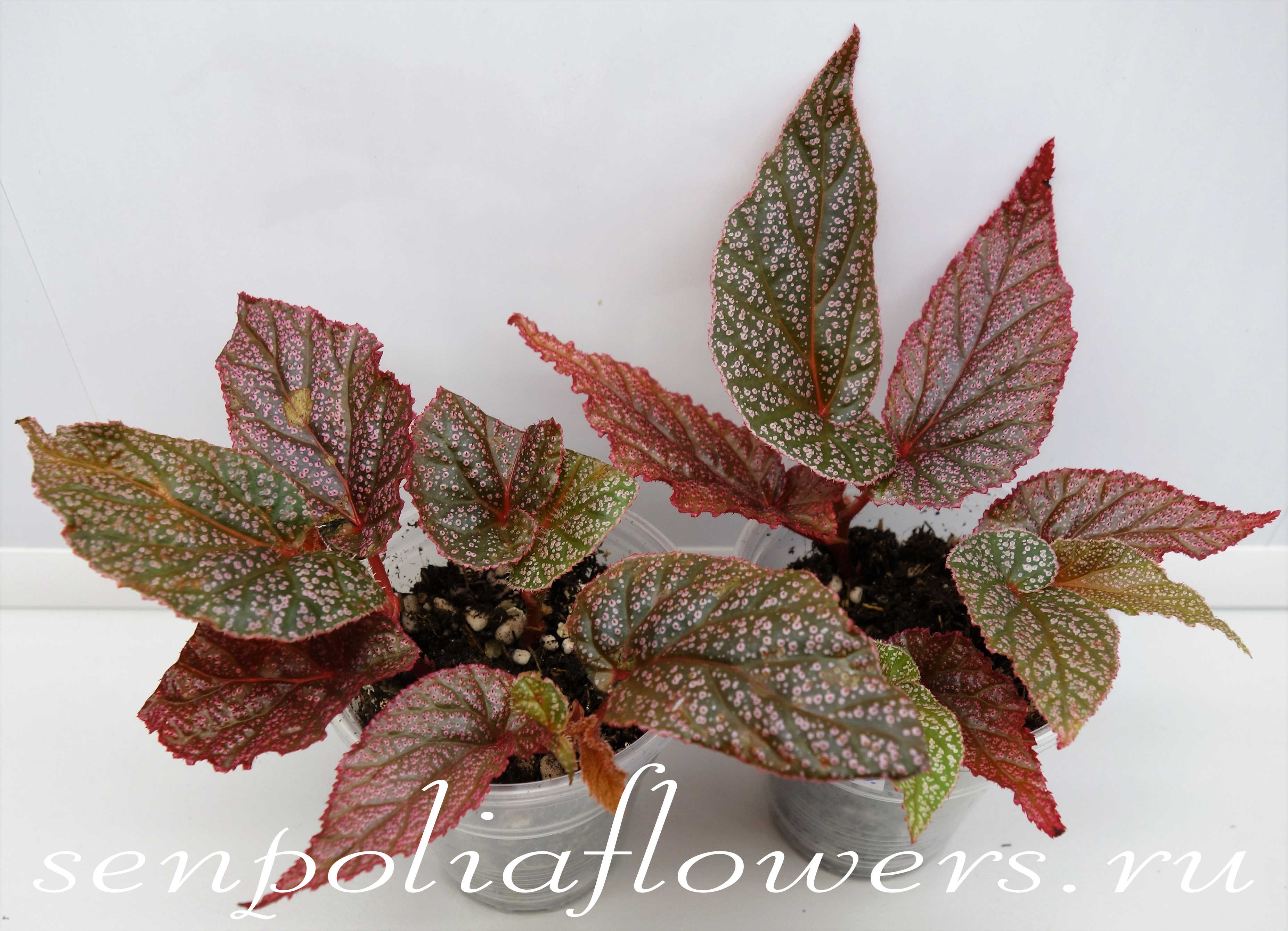 Роскошная кейн бегония, которая быстро растёт и ветвится. Листья ярко-металлического розового цвета с серебристыми крапинками на которых есть красные волоски. Жилки темно-оливково-зеленого цвета. Окантовка листа ажурная с зазубренным серебристым краем. Цветки ярко-розовые ,свисают гроздьями и их рекомендуется удалять.