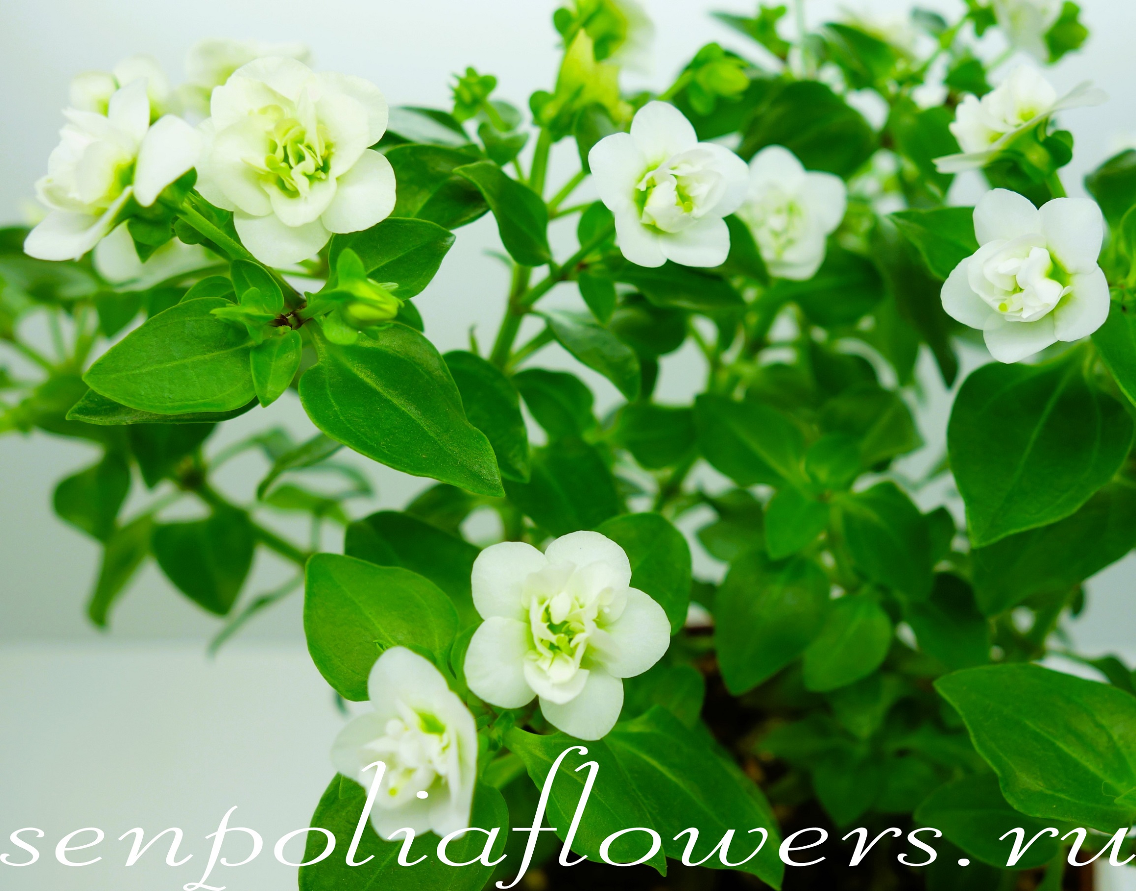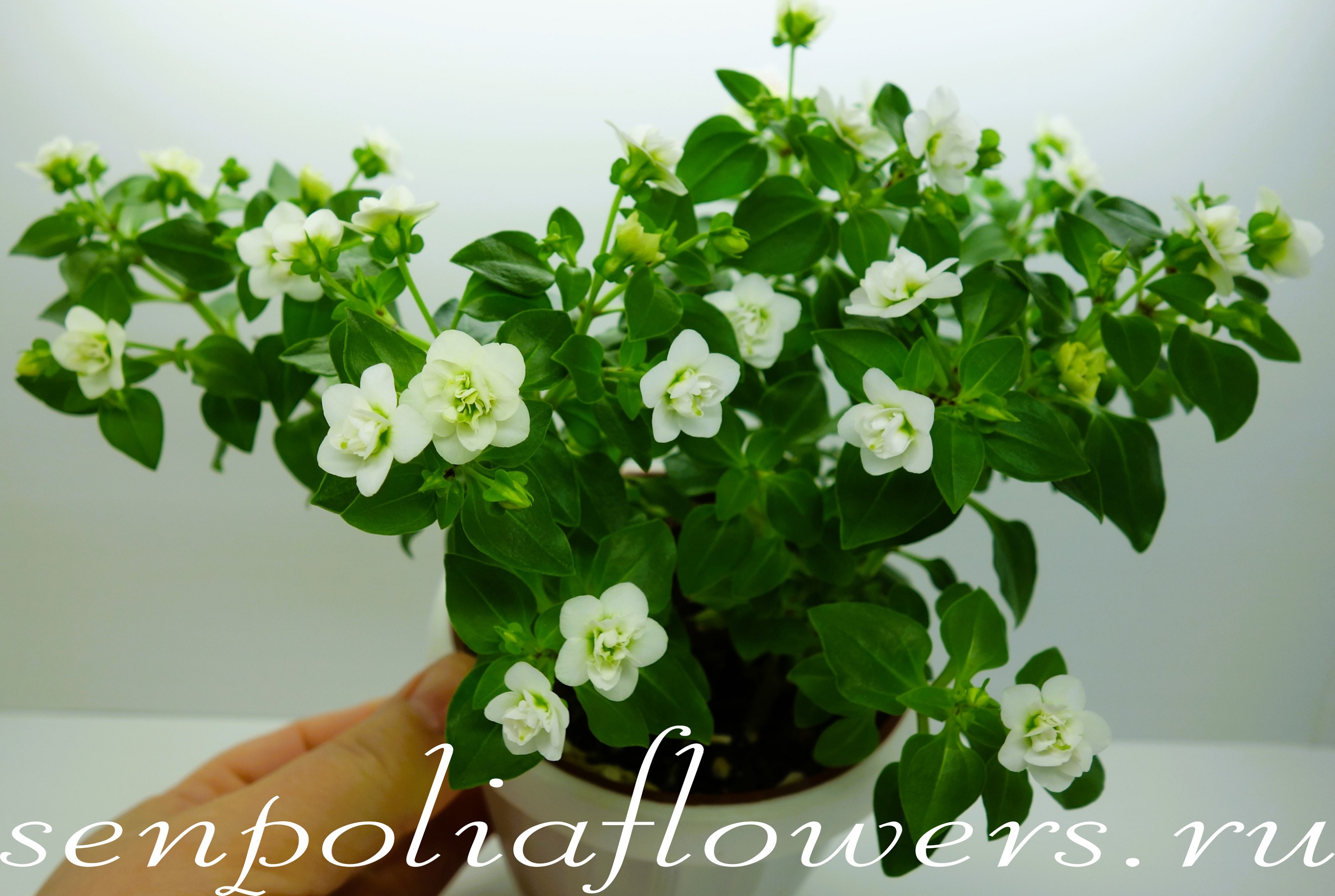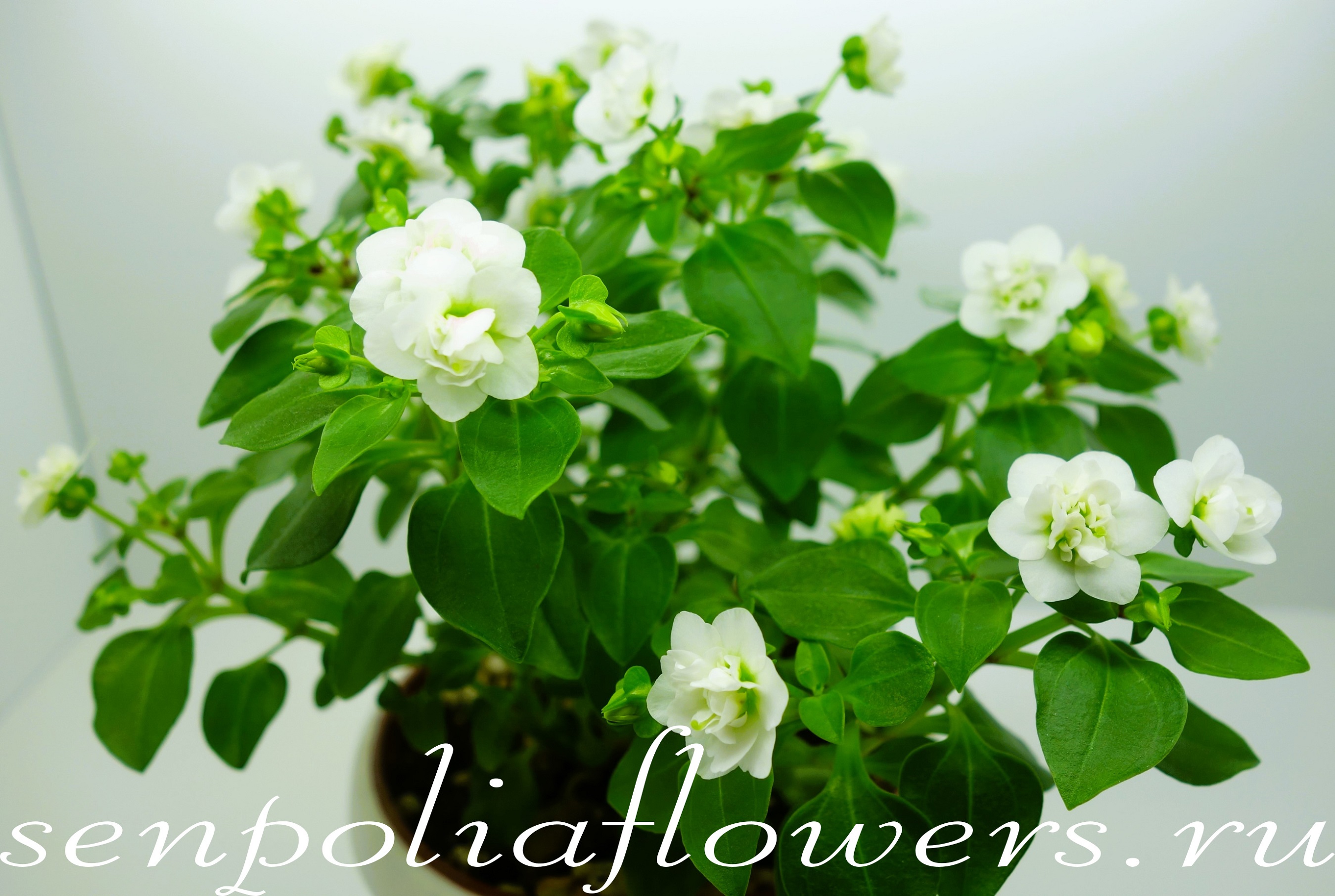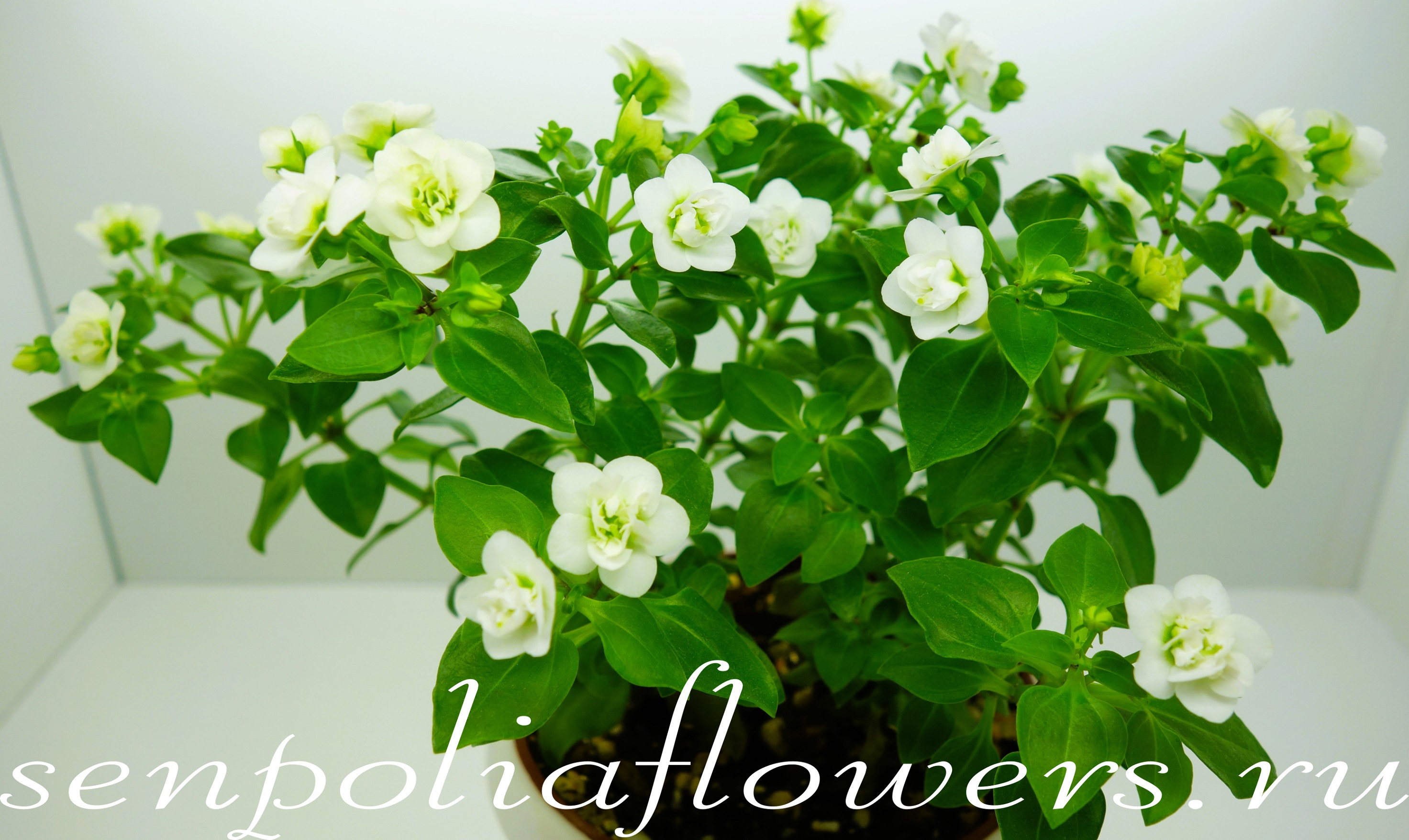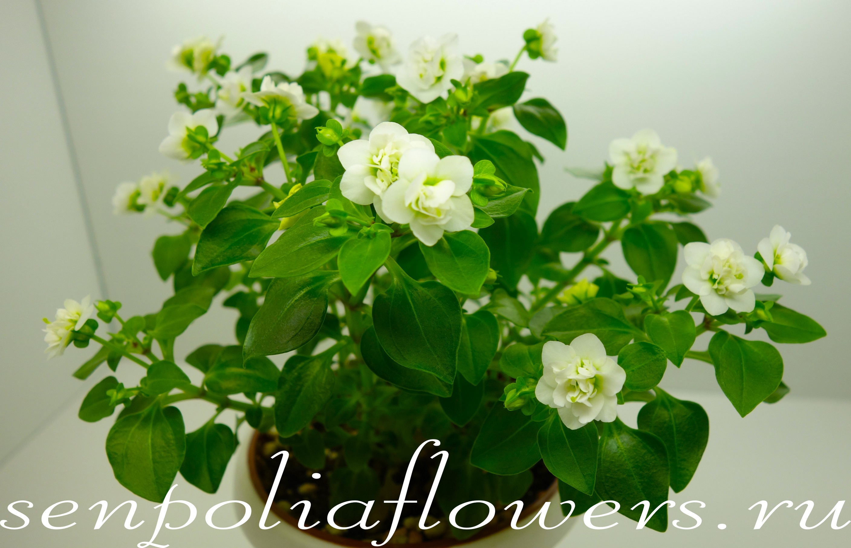 Экзакум (Exacum) относится к семейству Горечавковые (Gentianaceae). Растёт плотным невысоким кустиком сплошь усыпанным некрупными милыми белыми махровыми цветочками с ароматом ландыша. Чтобы почувствовать этот аромат нужно приблизиться к цветку. В уходе неприхотлив. Не любит пересушку грунта. Можно выращивать как однолетник и как комнатное растение. Требует ежегодного омоложения. Это можно сделать черенкованием или посевом семян.