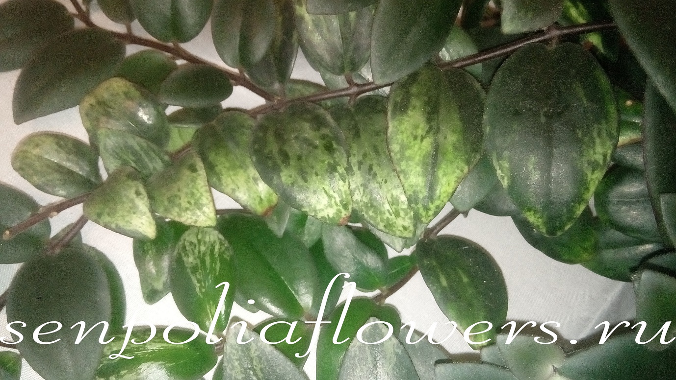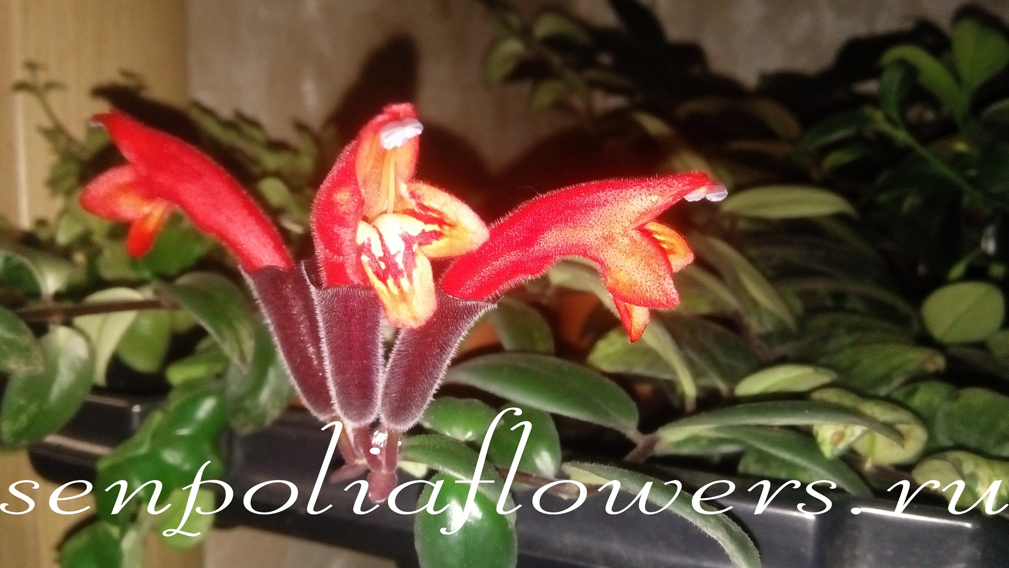 Эсхинантус Lobbianus Variegated. Пестролистная разновидность природного вида Aeschynanthus lobbianus Hook. Цветки трубчатые, двугубые, опушенные, яркого красного цвета с темно-бордовыми прицветниками и светлым кремово-желтым горлом. Листья зеленые мясистые кожистые. Осенью и зимой листья обычно темно-зеленые, а весной и летом приобретают эффектный пестрый бело-розовый хаотичный рисунок. Побеги поникающие, гибкие, упругие, нарядное продолжительное цветение. На ярком солнце листья могут краснеть.