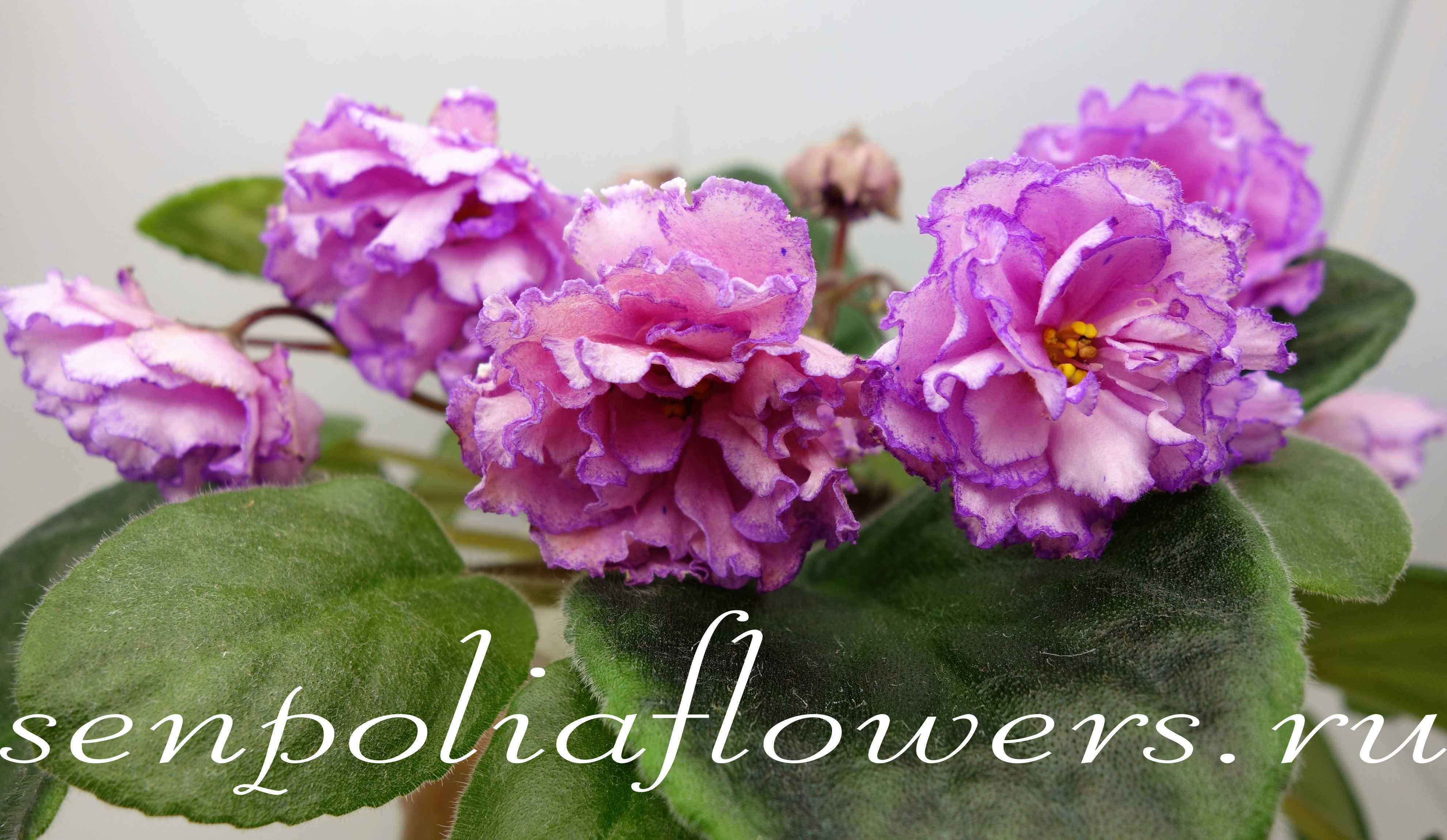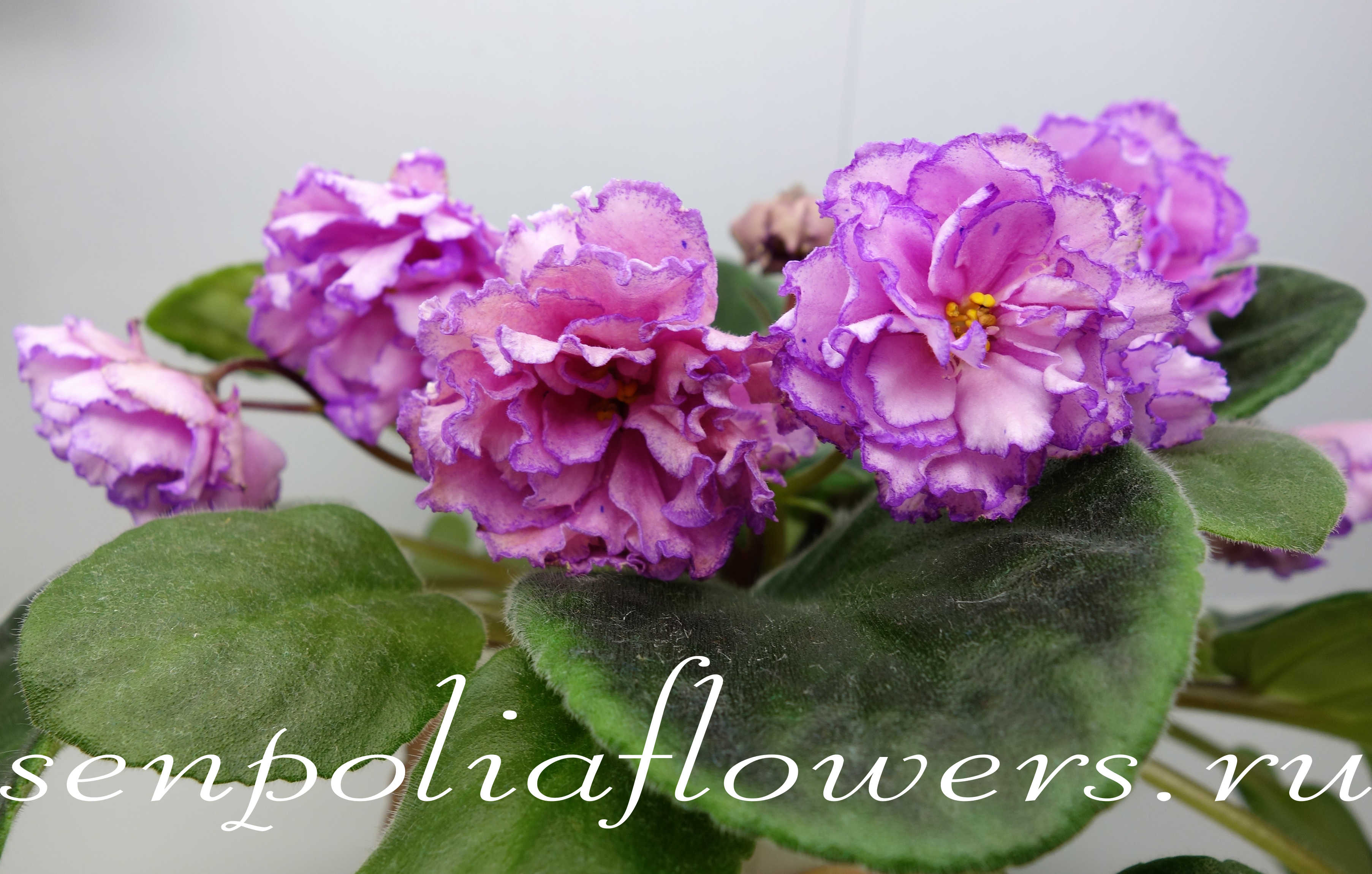 Огромные махровые цветы красивого розового цвета с волнистым краем и малиново-сиреневой каймой напыления. Цветы украшены редким синим фэнтэзи в виде крапа и штрихов. Хорошие цветоносы, обильное цветение. Зелёные листья.
