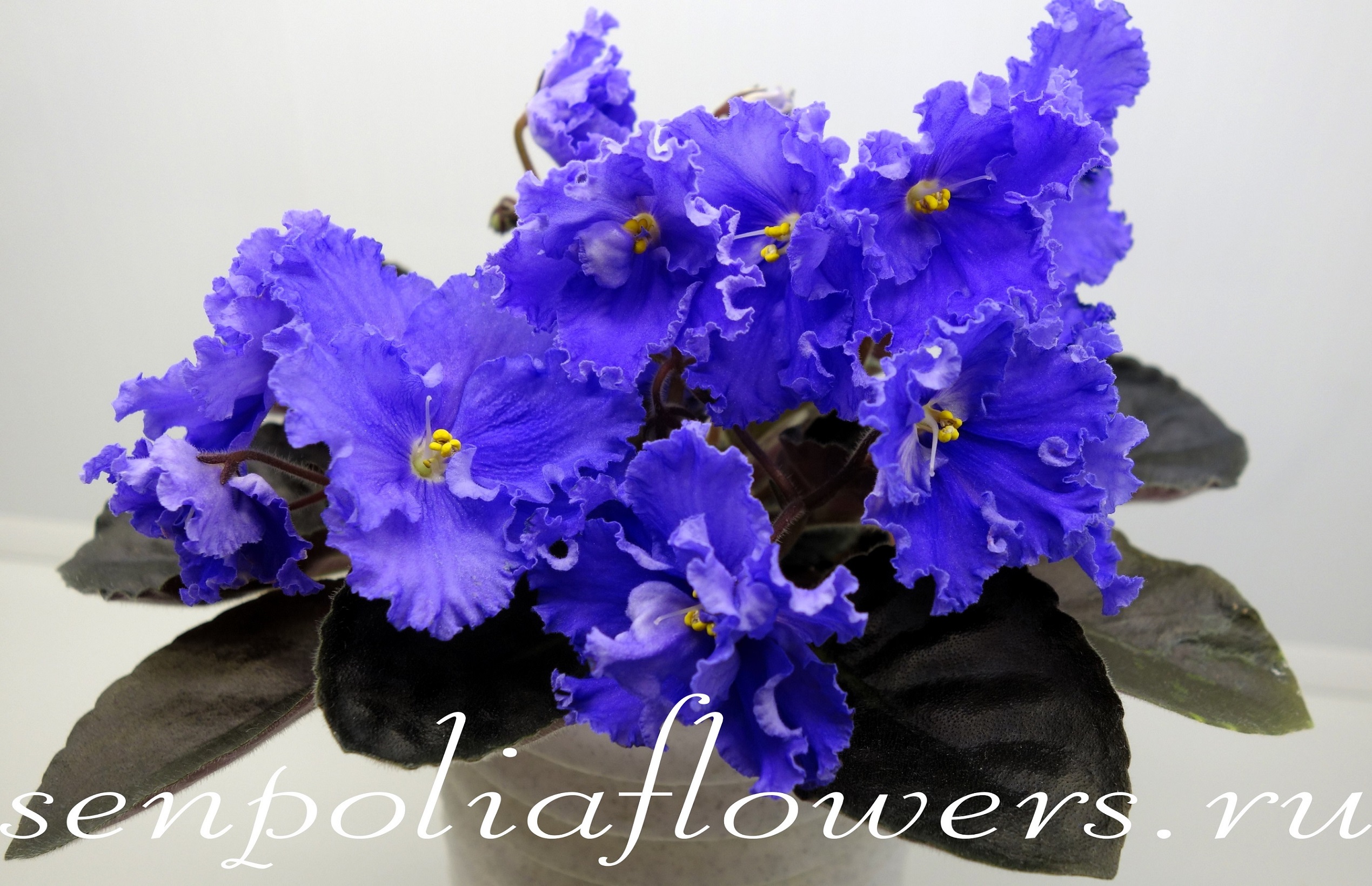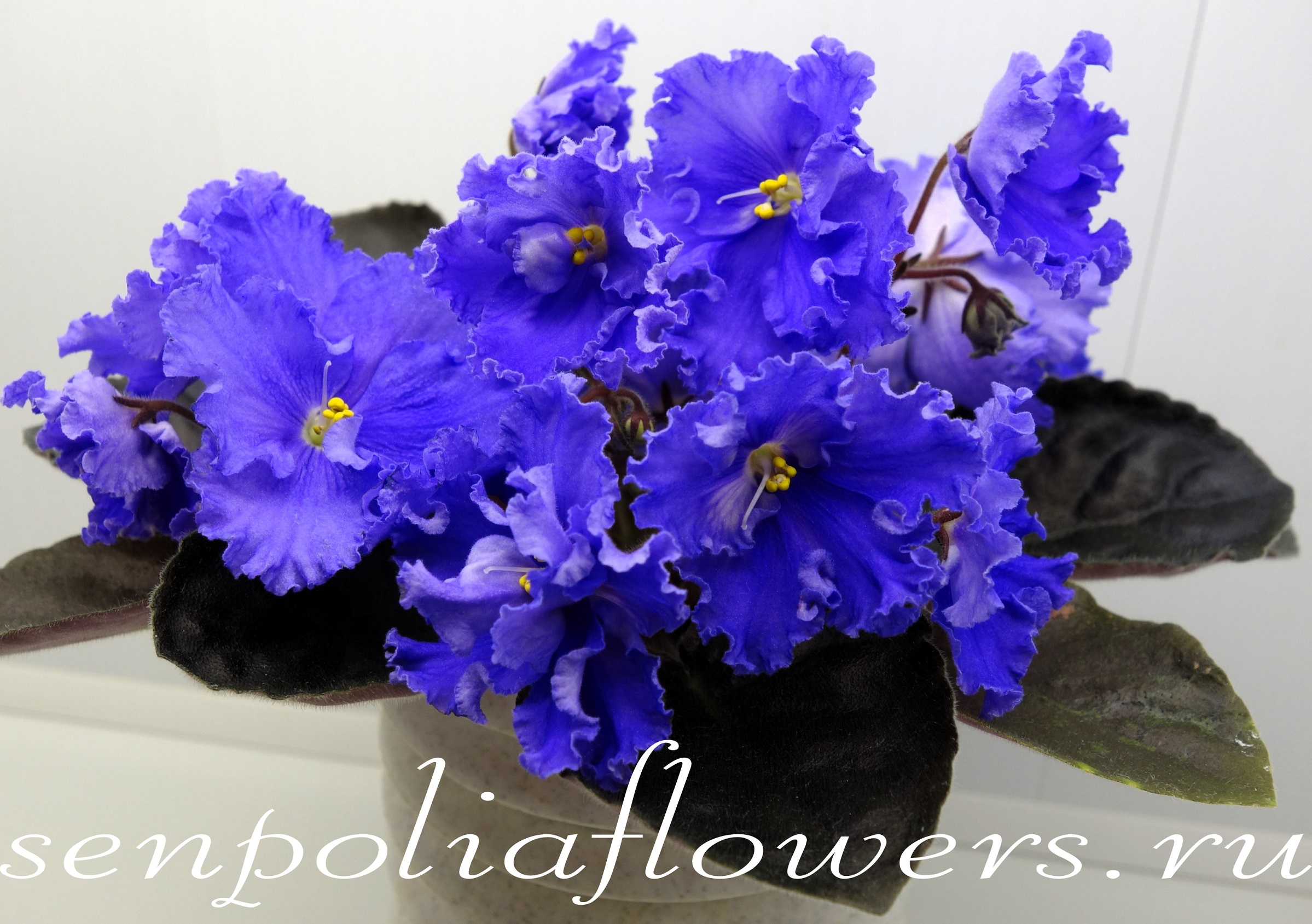 Крупные полумахровые сильно бахромчатые анютки сине-голубого цвета с легким лавандовым оттенком и красивым чётко выраженным венозным рисунком. В сильную жару венозный рисунок немного расплывается, но, тем не менее, хорошо заметен. Обильное и продолжительное цветение гроздьями. Стандартная розетка, темно-зеленые слегка волнистые удлиненные листья. Описание автора.