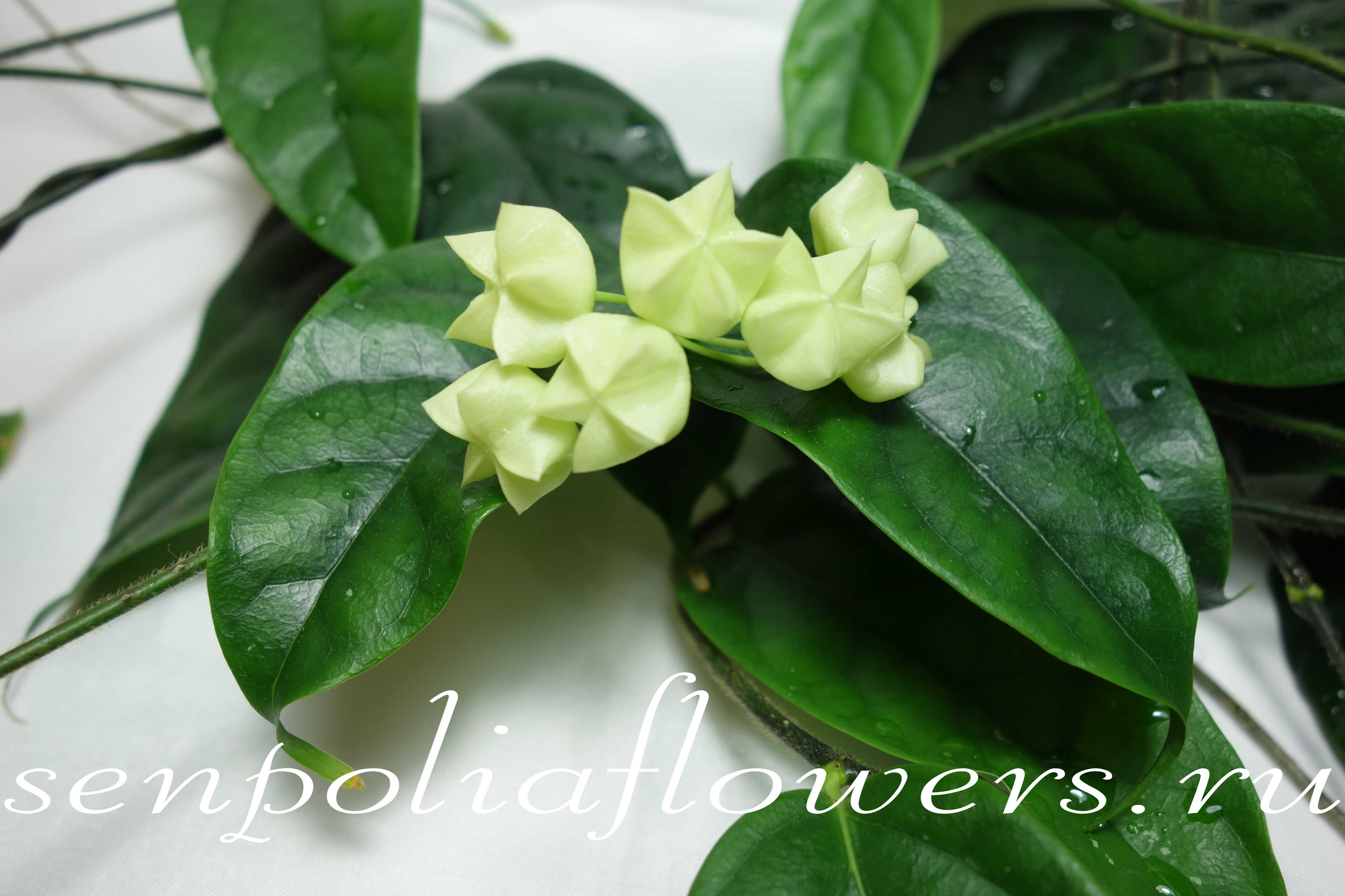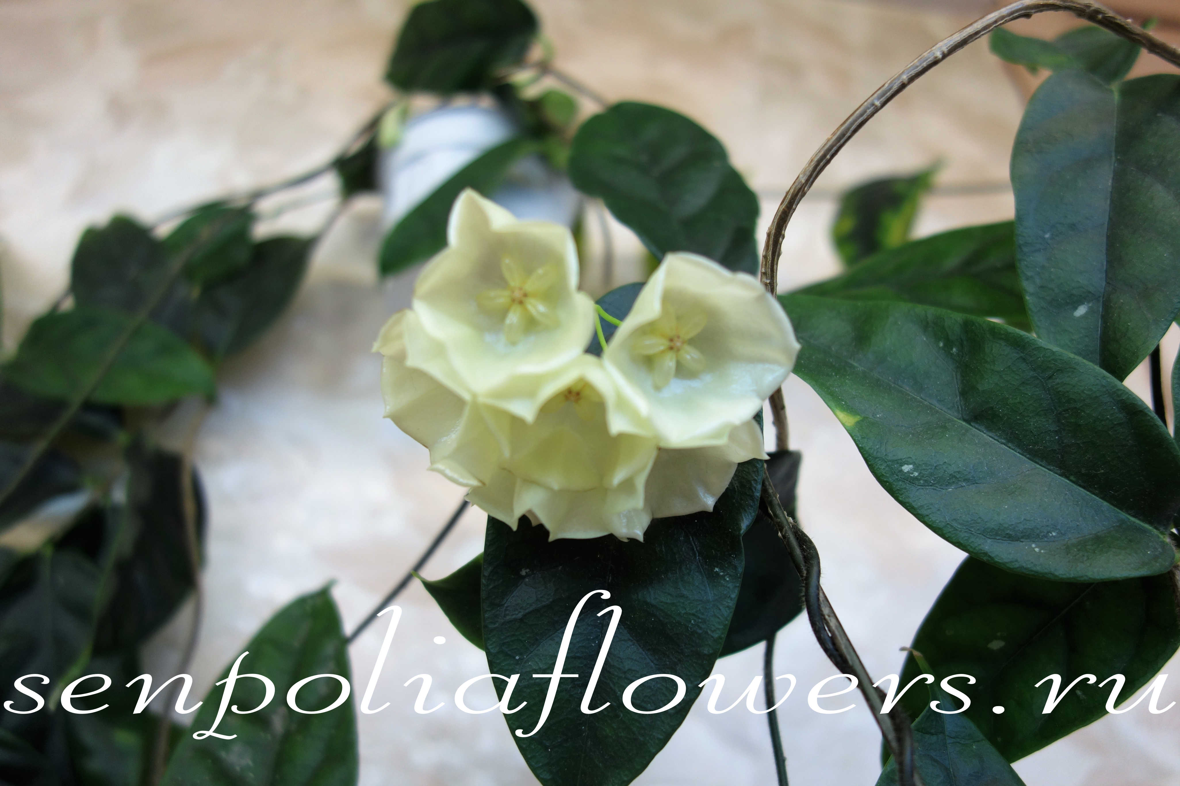 Эта хойя среднего размера и считается кустовой, но побеги очень тонкие, гибкие, поэтому требуется опора. Растёт быстро. Я накручиваю на опору. Лист округлый тонкий с заострённым кончиком со слегка заметными прожилками. Цветы кремово-желтые в форме блюдца диаметром до 2 см. Зацветает на 1-2 год. Не любит пересушку — скинет цветоносы и возможно листья.