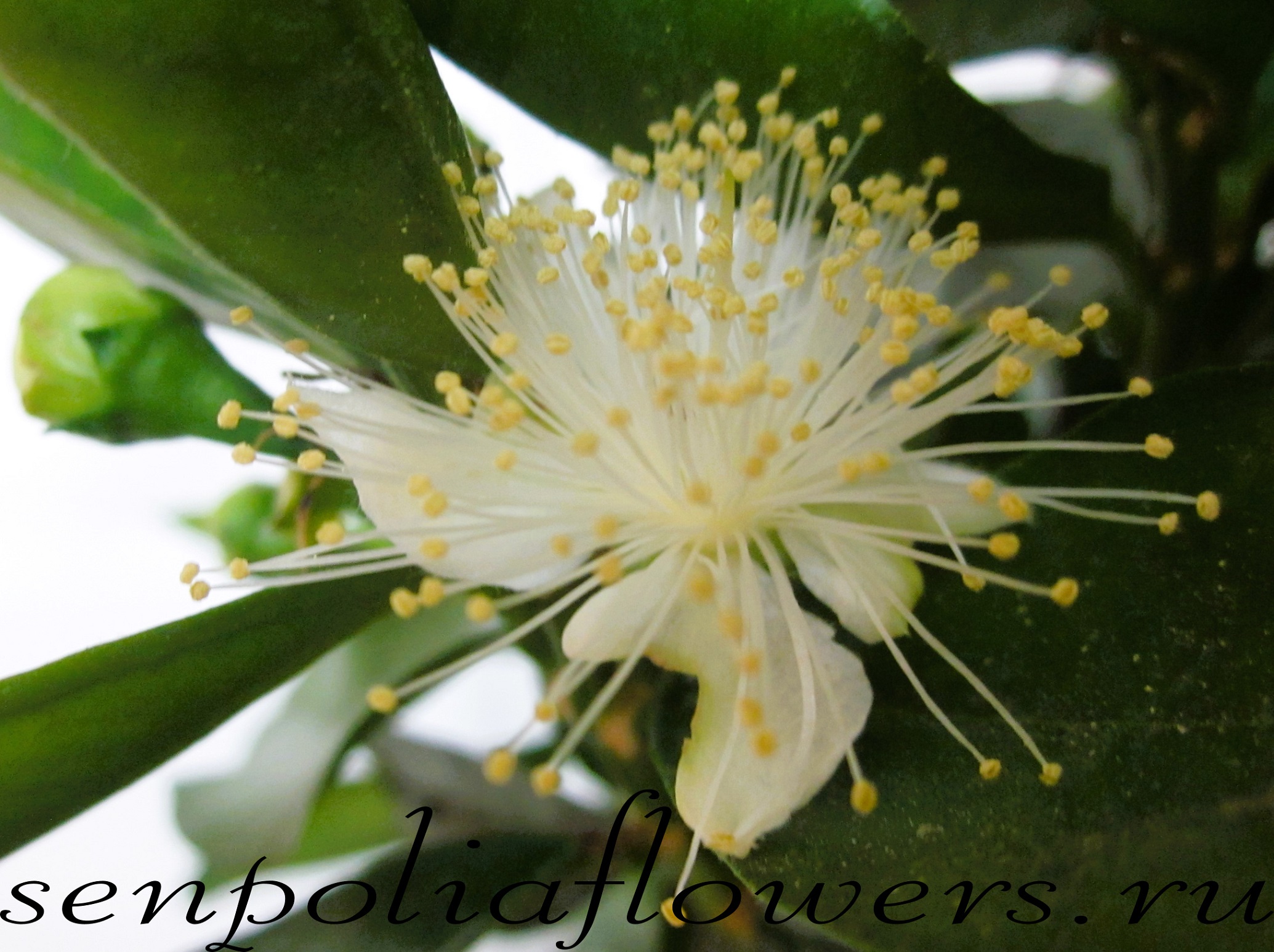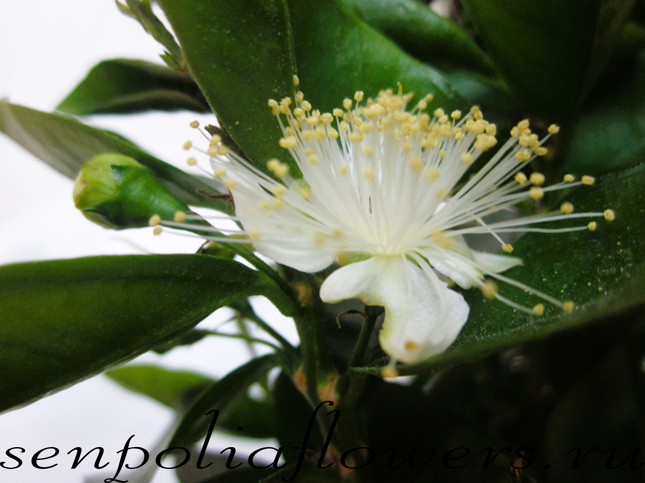 Интересная и редкая разновидность мирта обыкновенного, иногда встречается название Baetica. Это медленнорастущий сорт с крупными (6-7 см) вытянутыми и заостренными листьями. Цветы белые ароматные некрупные (до 2 см в диаметре), пятилепестковые, расположены по одному на длинных цветоножках. Многочисленные золотистые тычинки придают им особое своеобразие.